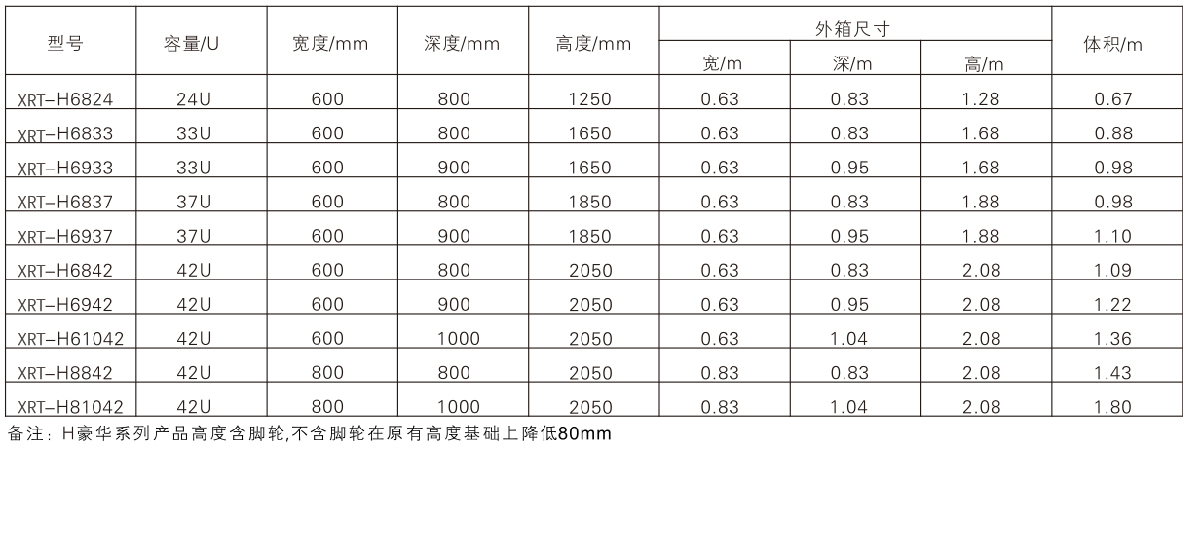 24U、28U、33U、37U、42U 、47U深度800mm(备注:1U=44.45mm)