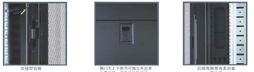 *标准配备了带有可方便拆卸的透风孔弧度前门合双开后门,通风面积大于80%,方便通风散热,提高网络设备运行的稳定性,良好的兼容性,能适应更多服务器,完美的通风设计、全方位的操作,多方位的察看;