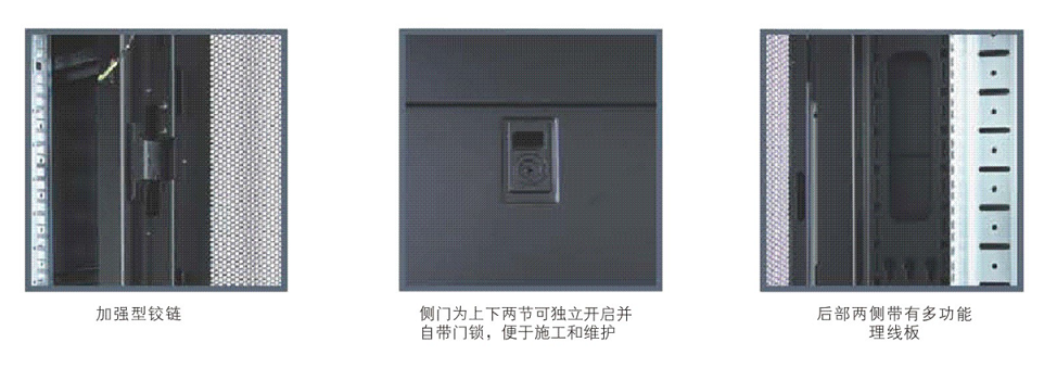 *国际流行透明钢化玻璃前门,玻璃侧夹带散热孔(其它网孔门可选配),后平板高密度网孔门,散热度≥70%;