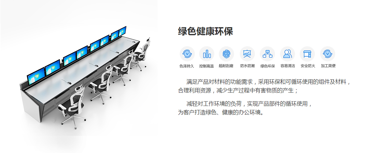 满足产品对材料的功能需求,采用环保和可循环使用的组件及材料,合理利用资源,减少生产过程中有害物质的产生;减轻对工作环境的负荷 ,实现产品部件的循环使用,为客户打造绿色、健康的办公环境。