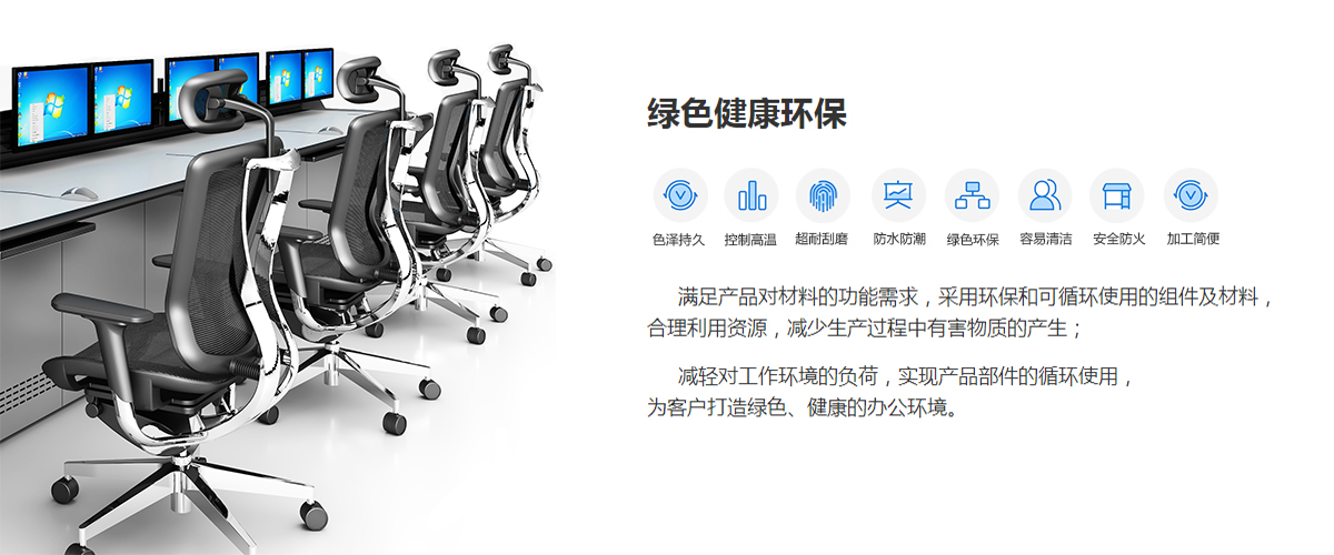 满足产品对材料的功能需求,采用环保和可循环使用的组件及材料,合理利用资源,减少生产过程中有害物质的产生;减轻对工作环境的负荷 ,实现产品部件的循环使用,为客户打造绿色、健康的办公环境。
