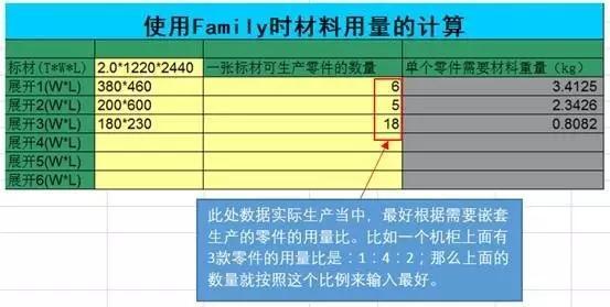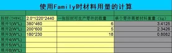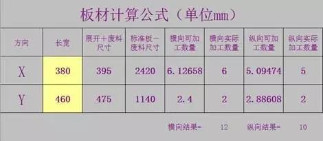 这个表格一定制定下来,后续报价的时候只需输入展开后的长宽就可得到单张板材的产出量,这样避免了人为估算的差错。